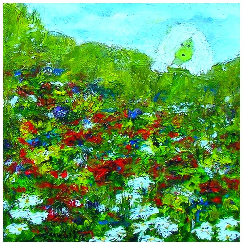 Acrylverf op doek; hoogte 20cm; breedte 20cm.